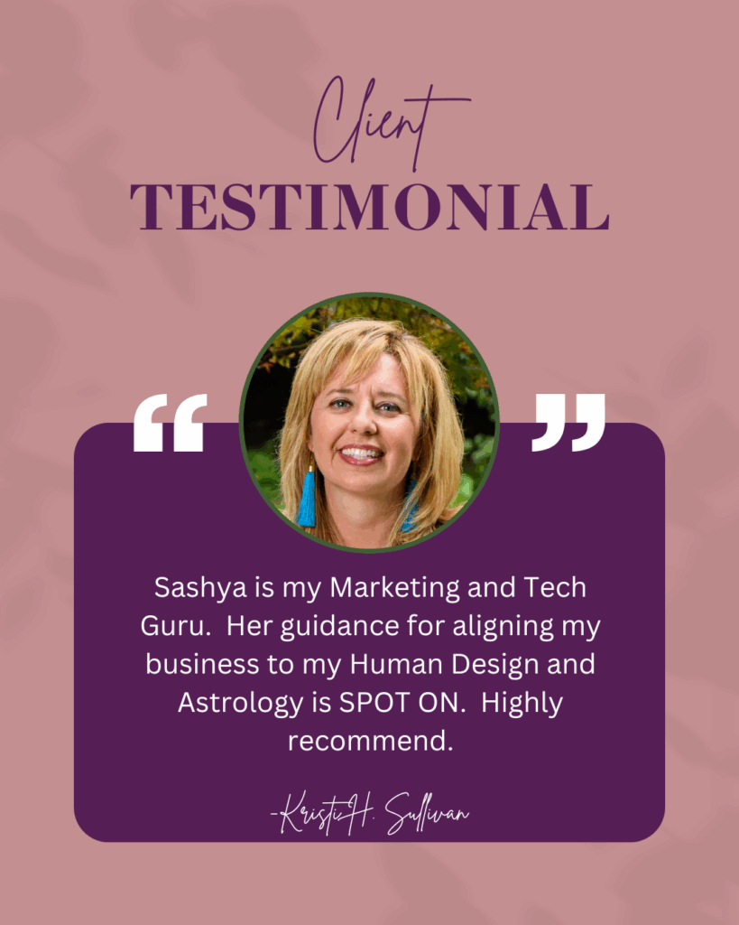 A Business by Design Reading is a 90-minute 1:1 session where we look at your business through the lens of you—your Human Design, your Astrology, your website, your brand voice, your audience, and your offers. Together, we uncover the subtle (and not-so-subtle) ways you’ve been operating out of alignment—and exactly how to shift back into your natural rhythm.